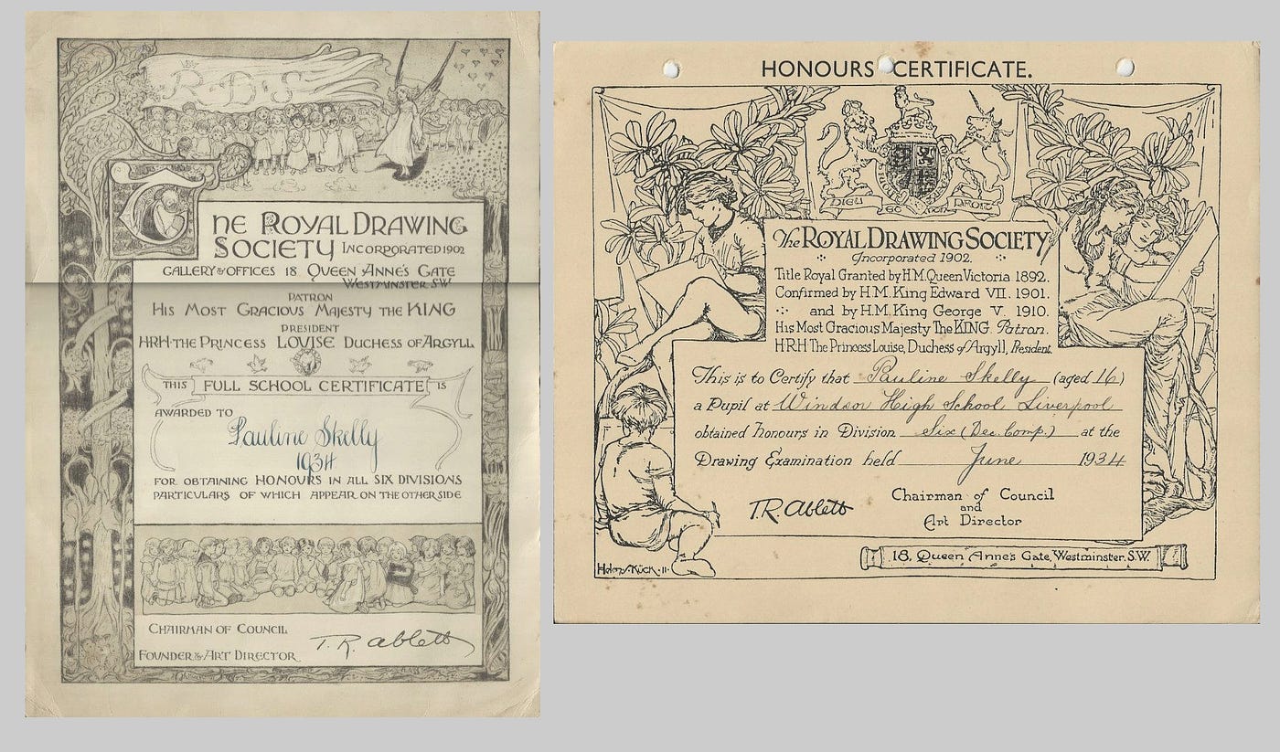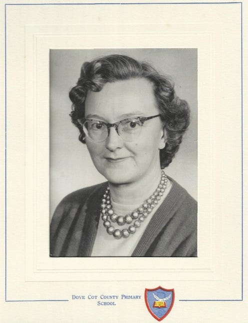 When I first heard this a lump formed in my throat. The reason I know about it is that she left an archive of her life — all in one battered old suitcase. In it was an historical treasure trove which included a scrapbook of photographs from her time at the school dating from 1961 [the year of my birth], and various other documents until her retirement on 31st August 1977, her school certificate from Oxford University, exquisite watercolour paintings [there are certificates from the Royal Drawing Society, dated 1934], letters of commendation from Liverpool Education Authority, farewell cards handmade from some of her adoring pupils and various documents such as a bank loan for the value of £500 in 1960 to purchase a car. Practically her whole life was in that case.